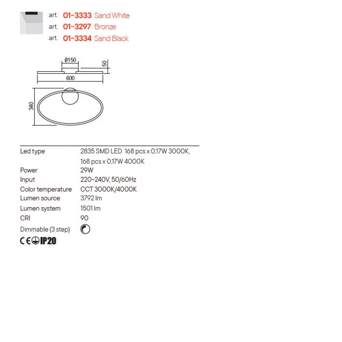 Leo 01-3297 Plafoniera Redo, bronz 29W 3000/4000K LED CCT, 3792 lm, dimabila in 3 trepte