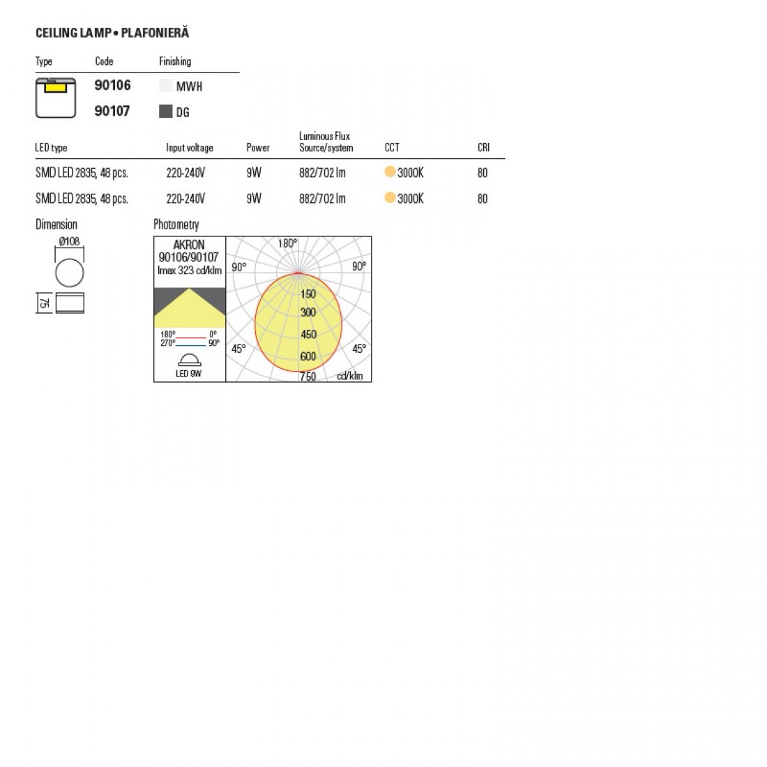 AKRON PLAFONIERA EXTERIOR, Gri închis, LED SMD 9W IP54 DG 3000K, 90107