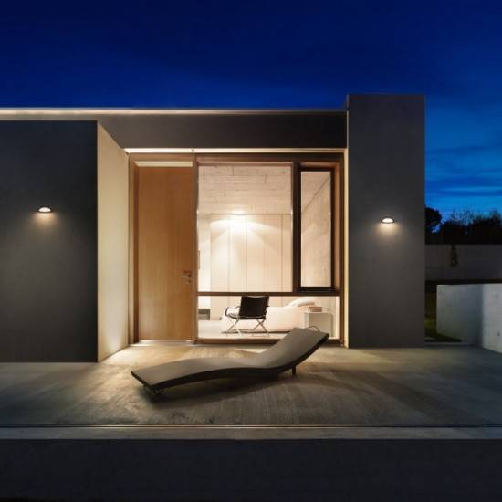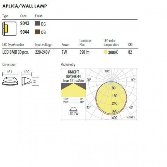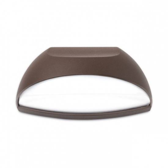 Aplică modernă pentru exterior cu structura din aluminiu turnat sub presiune, vopsită în câmp electrostatic culoare maro inchis si dispersor din policarbonat opal.
