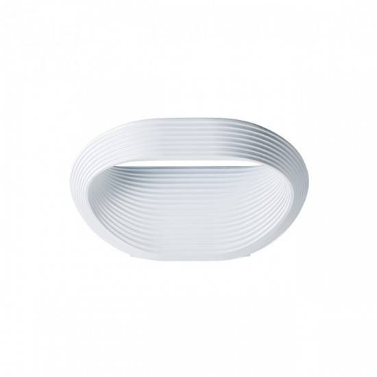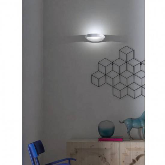 Aplică moderna pentru interior, cu dispersie indirectă a luminii, cu structura din aluminiu turnat sub presiune, vopsit în câmp electrostatic culoare alb mat.