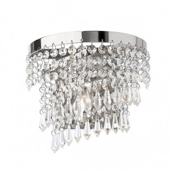 Aplica clasica pentru interior, cu structura din metal cromat si pandantive din cristal.