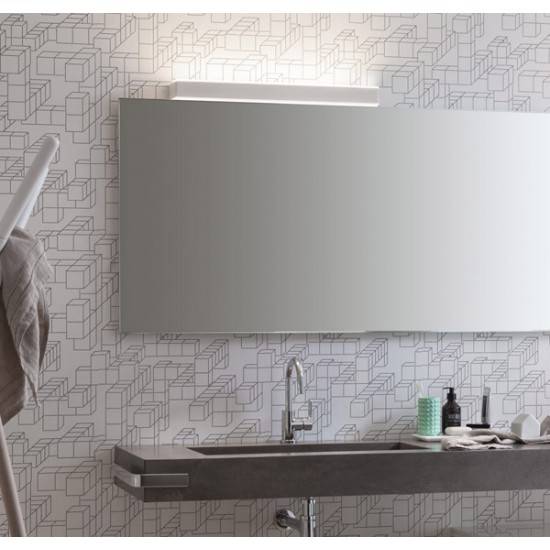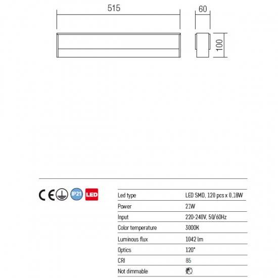 Aplică pentru interior cu grad de protectie la umiditate, cu structură din metal vopsită în câmp electrostatic în culoare alb mat si dispersor din acril satinat.