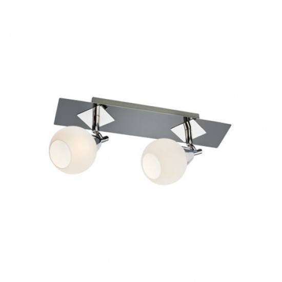 Aplica/Plafoniera pentru interior cu structura din metal finisat crom negru cu ornamente cromate si dispersoare din sticla alb opal.