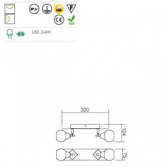 Echipat cu LED-uri COB de 4W, temperatura de culoare alb cald, 3000ºK.