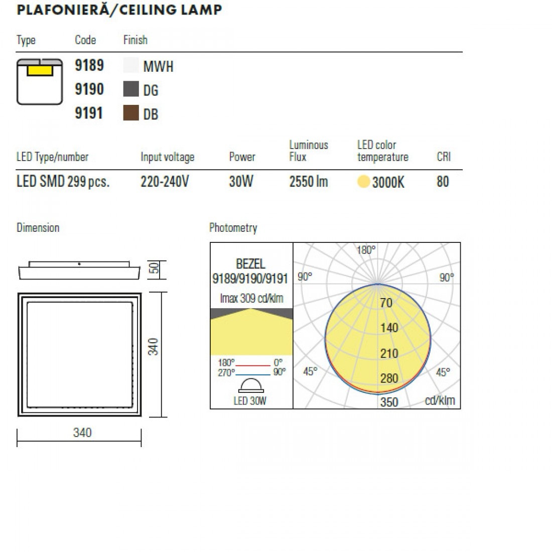BEZEL Plafoniera exterior, Maro închis, LED 30W, IP54, 3000K, 9191