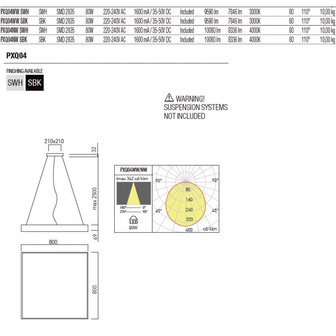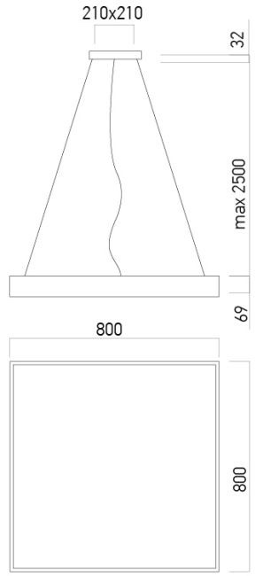 Corp de iluminat cu montaj pe plafon sau suspendat (cu accesoriul corespunzător), formă pătrată, echipat cu LED-uri SMD 80W, temperatură de culoare alb cald sau alb neutru.