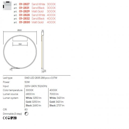 APLICA/PLAFONIERA REDO FEBE LED 37W 4000K D800 ALB MAT 01-2828