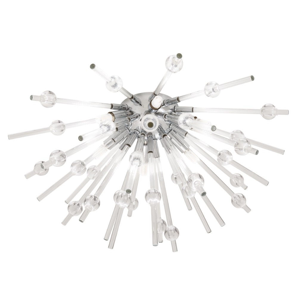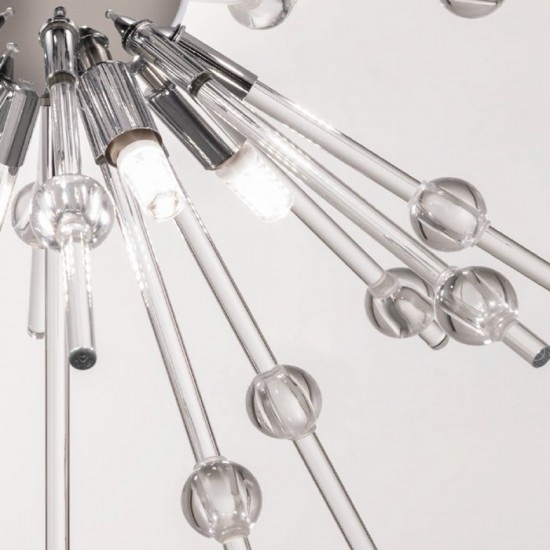 Lustră clasică pentru interior, cu structură din metal cromat cu brațe din sticlă transparentă și sfere decorative din acril transparent.