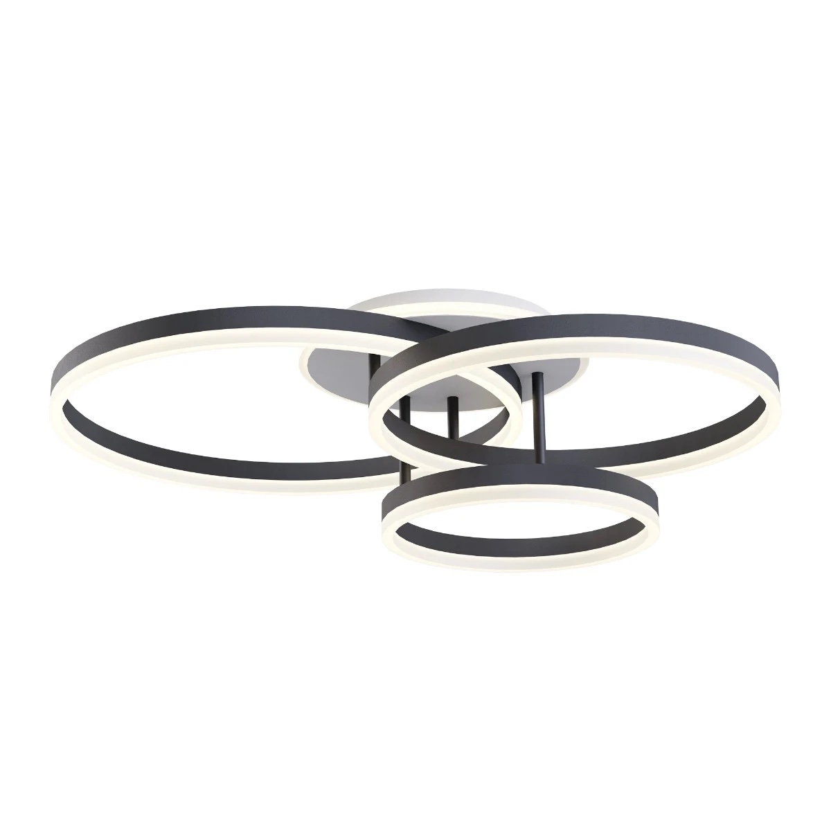 Lustră moderna pentru interior, bază din metal vopsită alb mat cu structură din aluminiu vopsită negru mat, dispersoare din acril satinat.