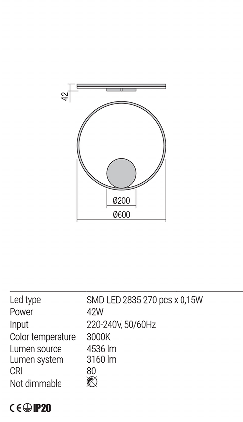 Aplica/Plafoniera ORBIT LED 42W 3000K D600 INDIRECT LIGHT, BRONZ, Dimabila TRIAC, 01-1705-TRIAC