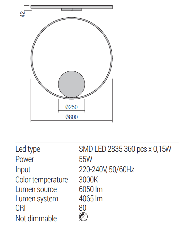 Aplica/Plafoniera ORBIT LED 55W 4000K D800 INDIRECT LIGHT BRONZ, Dimabila TRIAC, 01-1911-TRIAC