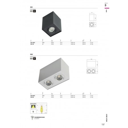 Tensiunea de alimentare 230V, 50Hz. Dulie GU10 din ceramică. Clemă de conexiuni 2P+N (10A/250V/2,5mm²).