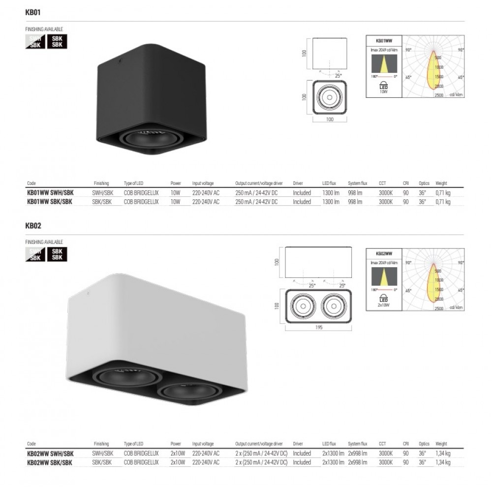 Plafoniera Arelux XKubo, aluminiu, alb, LED, 20W, 2600 lumeni, alb cald 3000K, IP40, KB02WW SWH/SBK