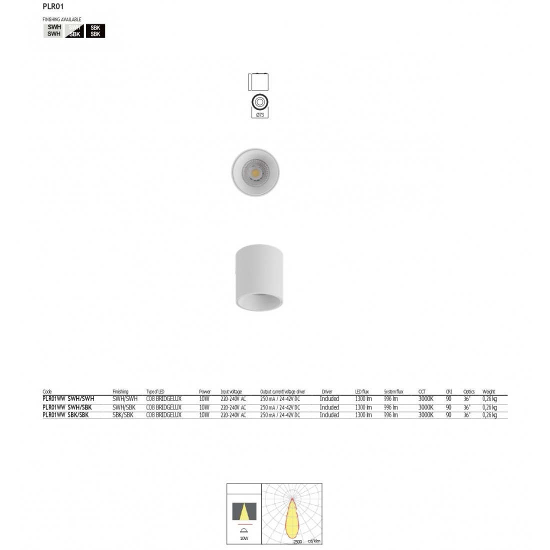 Plafoniera Arelux XPilar, aluminiu, alb, LED, 10W, 1300 lumeni, alb cald 3000K, IP40, PLR01WW SWH/SBK