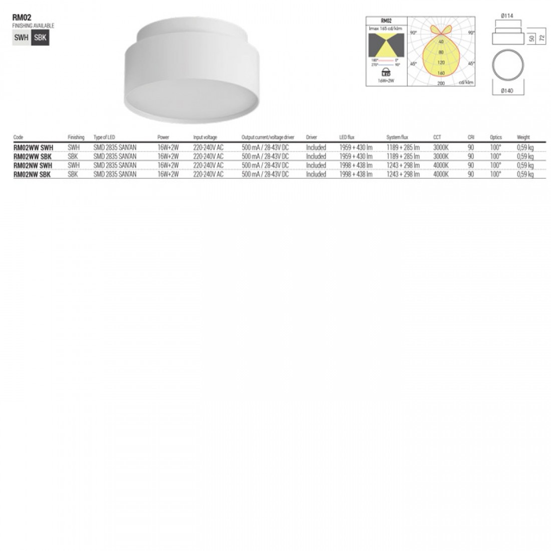 Plafoniera Arelux XRim, aluminiu, alb, LED, 18W, 2389 lumeni, alb cald 3000K, IP40, RM02WW SWH