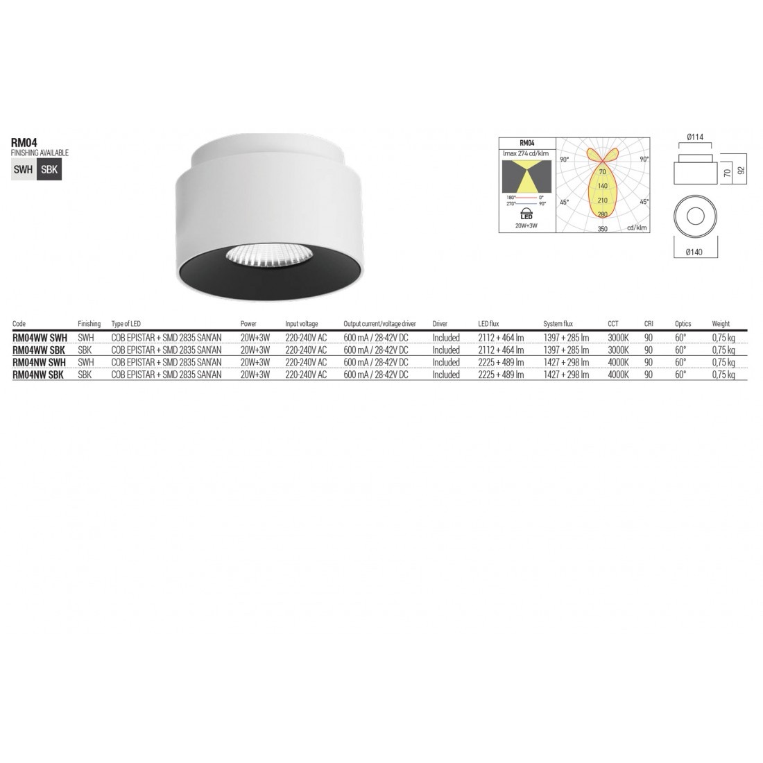 Plafoniera Arelux XRim, aluminiu, alb/negru, LED, 23W, 2714 lumeni, alb neutru 4000K, IP40, RM04NW SBK