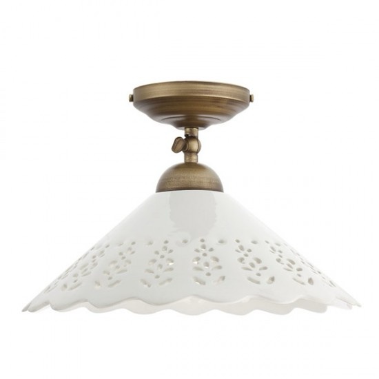 Plafoniera clasică Lea, abajur ceramică cu decoruri traforate , bază metalică alama antică , D. 31cm, 1xE27, Incanti, 02-802CT31