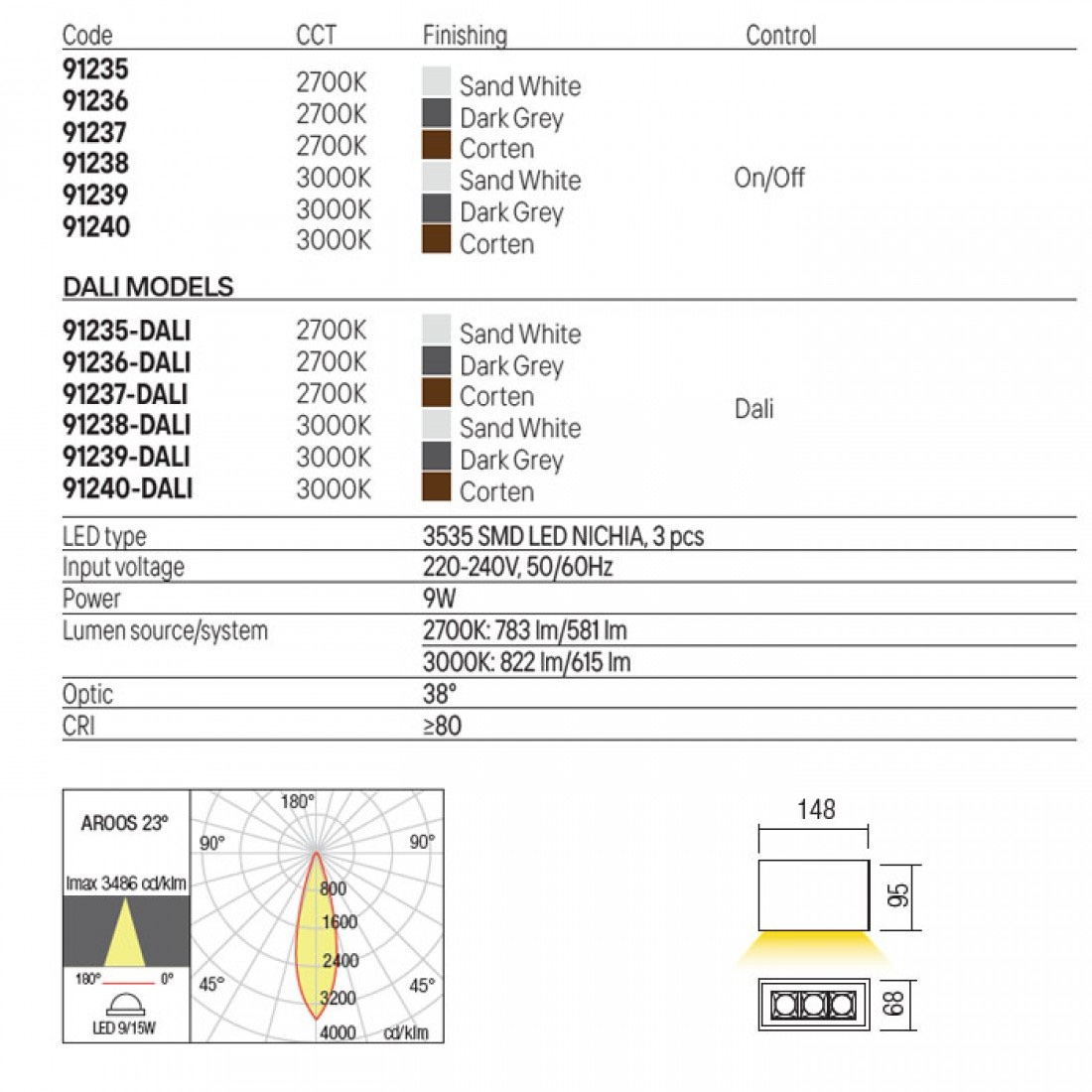 Echipata cu LED-uri SMD 9W cu temperatura de culoare alb cald 3000K.