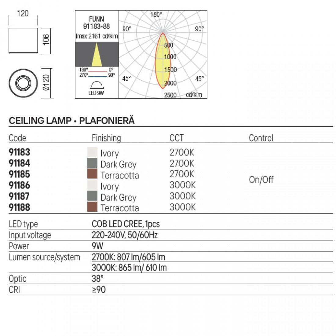 Plafoniera exterior Funn, maro, LED, 9W, 610 lumeni, alb cald 3000K, IP65, 91188