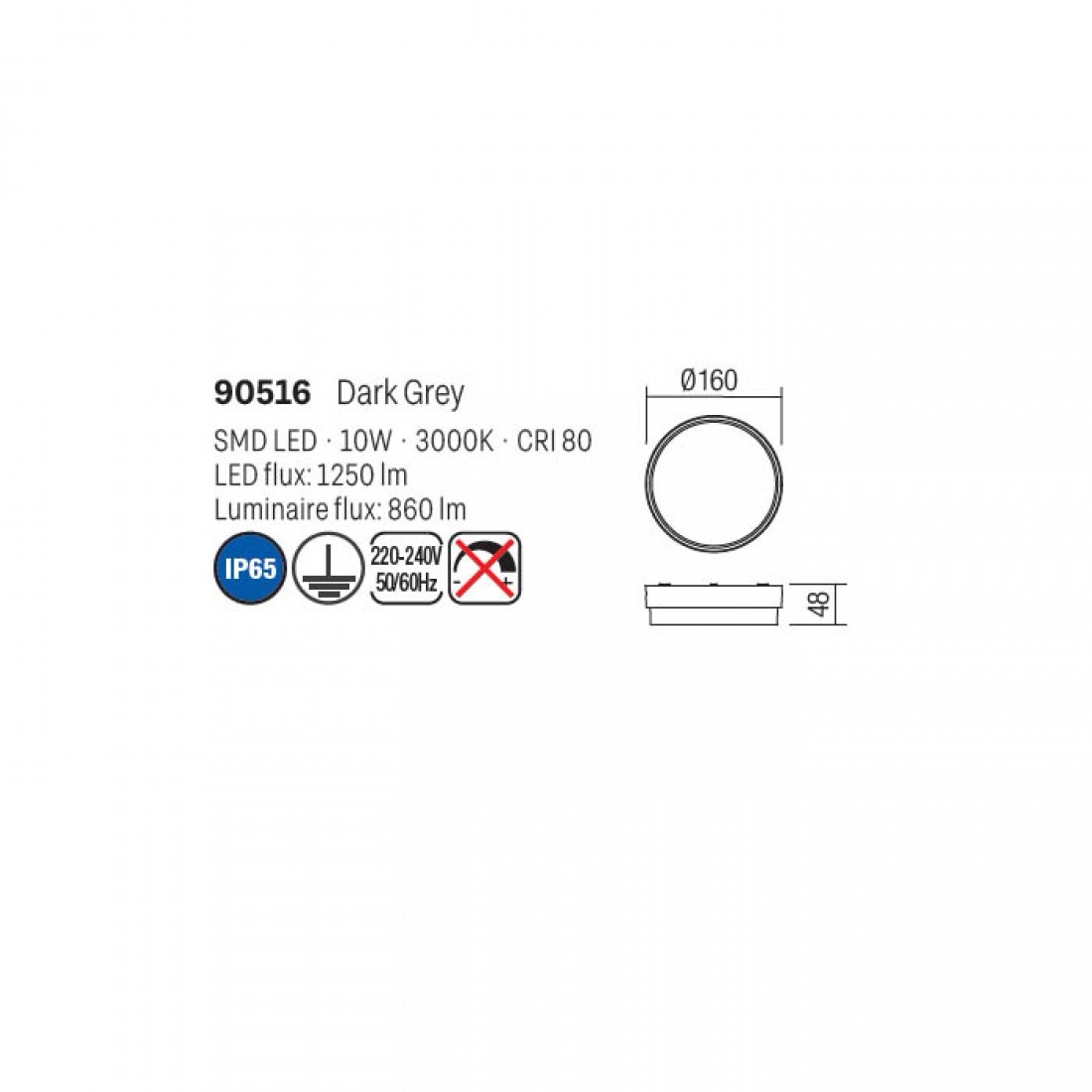 Plafoniera exterior Urania, gri inchis, LED, 10W, 860 lumeni, alb cald 3000K, IP65, D.16 cm, 90516