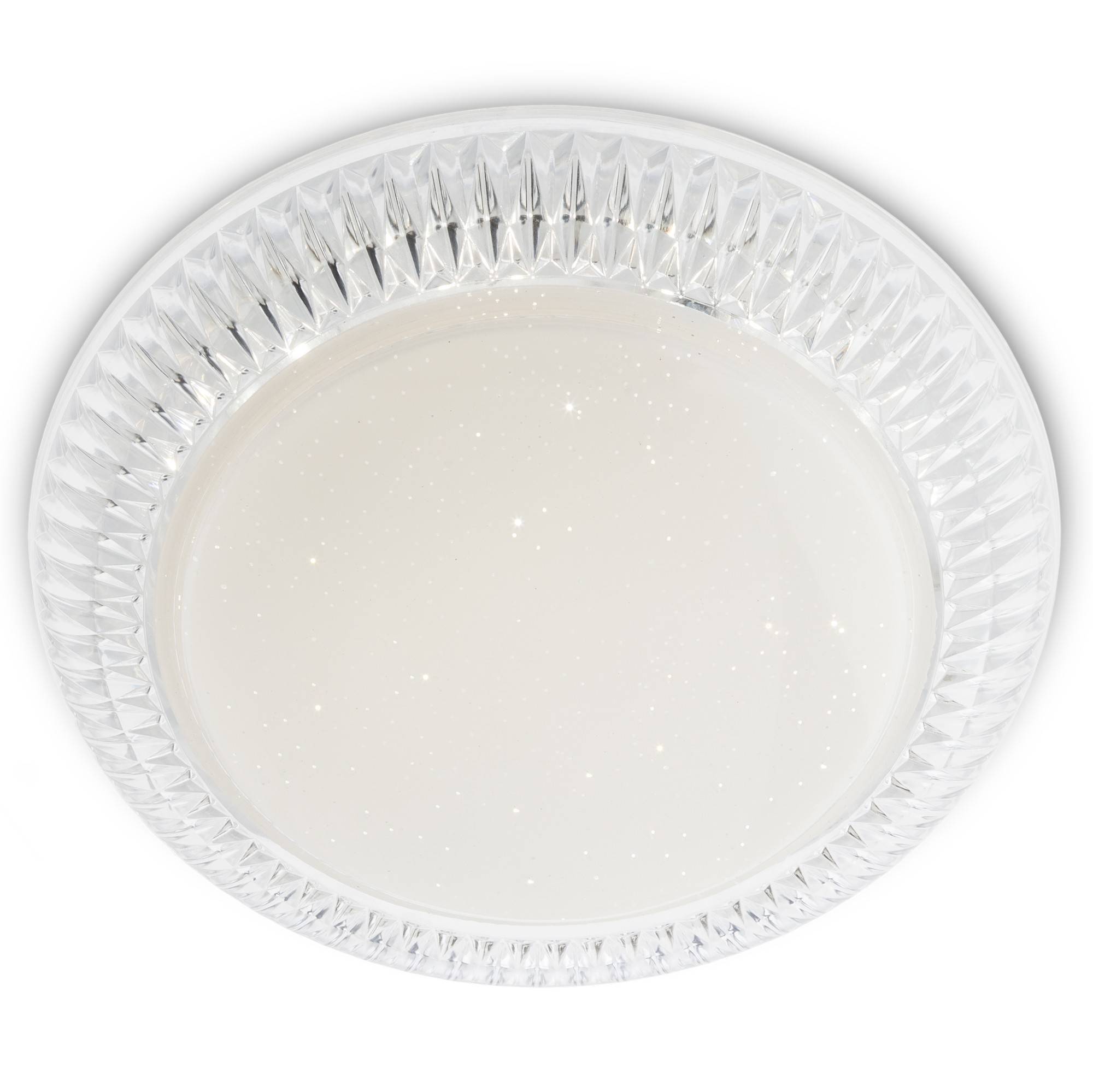 Plafoniera Brille 05-852 este un corp de iluminat echipat cu LED-uri SMD cu structura din metal vopsit alb, abajur din acril transparent amprentat model diamant si dispersor din plastic alb.