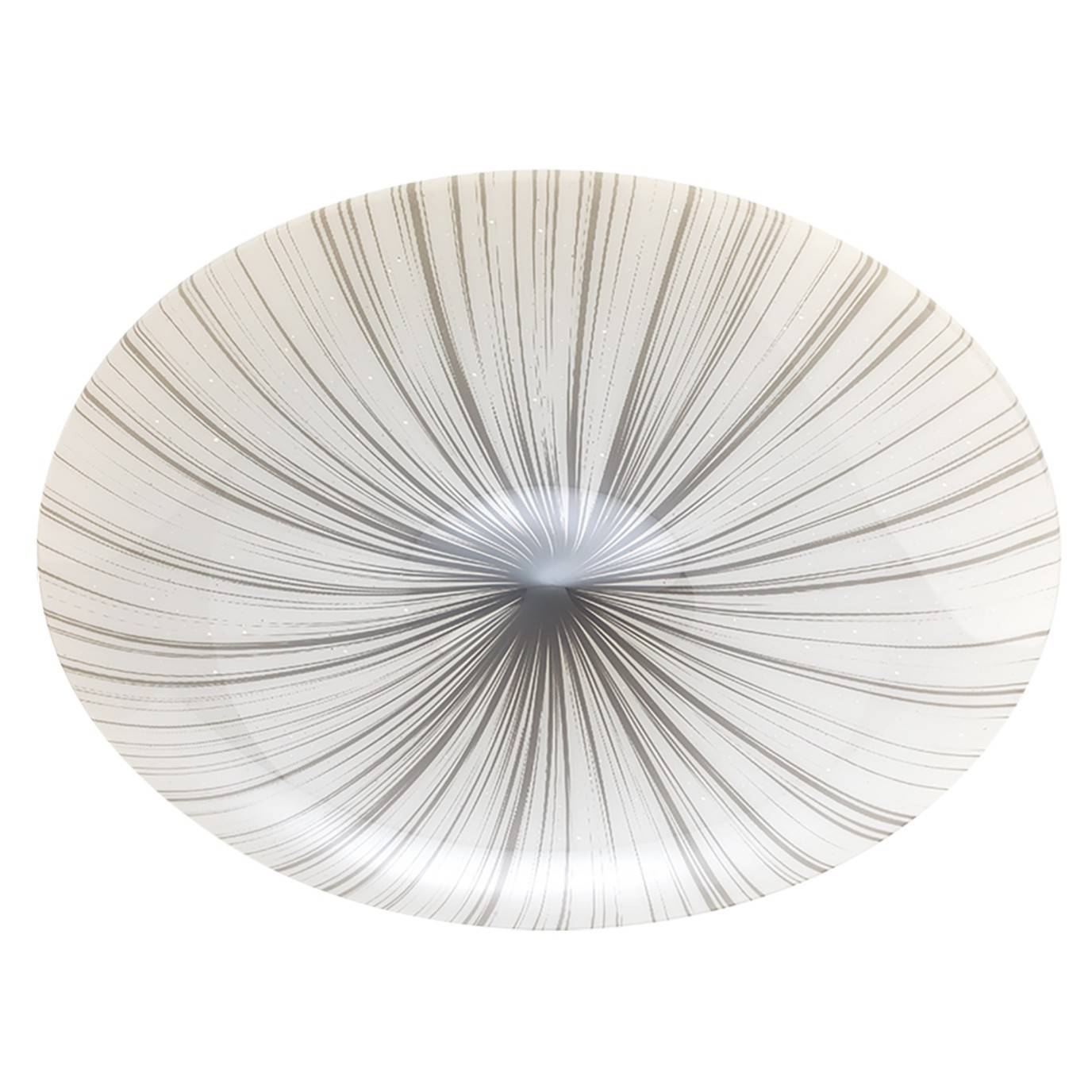 Plafoniera Hipno 05-885 este un corp de iluminat ce detine structura din metal vopsit alb si dispersor din acril alb cu decoratiune gri si cu efect de sclipire.