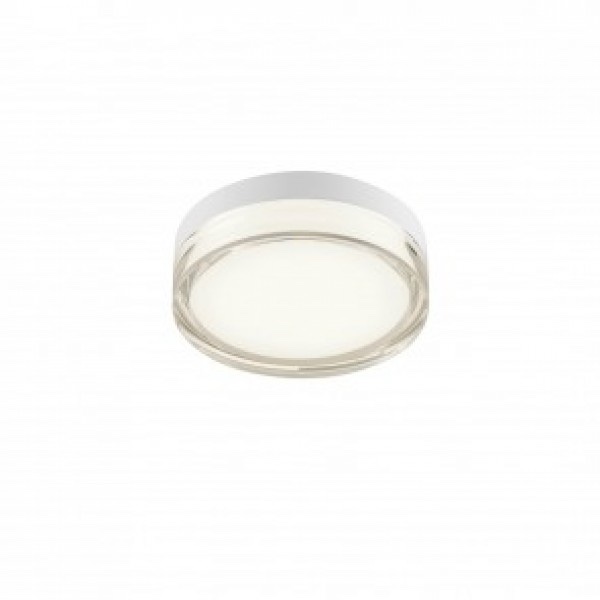 Plafonieră pentru interior protejată la umiditate, echipată cu LED -uri SMD, structură din aluminiu vopsit alb mat, dispersor din PMMA vopsit alb la interior și transparent la exterior.