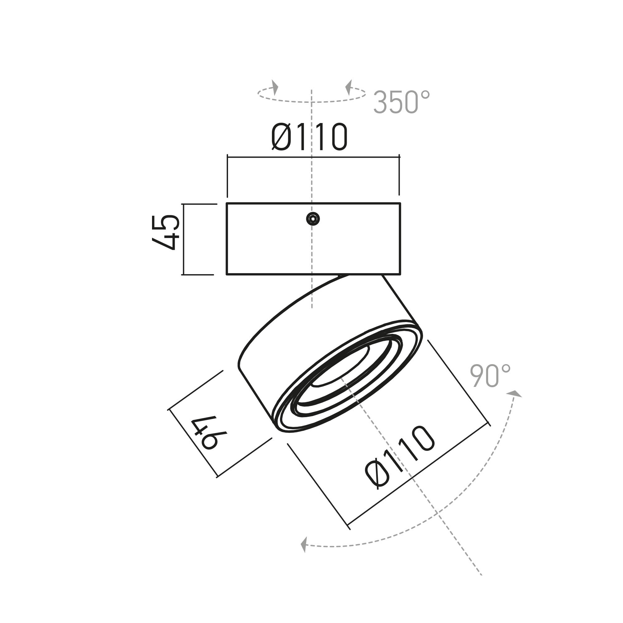 Plafonieră orientabilă de interior, rotundă, unghi de dispersie reglabil 15°-45°, pentru montaj aparent, echipată cu LED COB, temperatură de culoare alb cald.