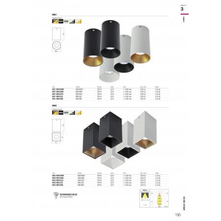 Plafonieră pătrată Xnitro GU10 1x50W max., Alb mat/ interior negru Arelux, NR02 MWH/MBK