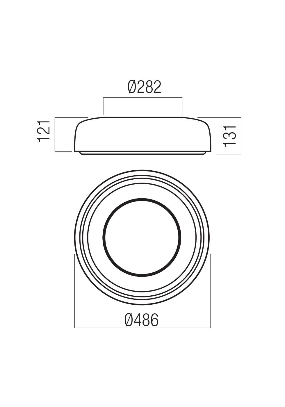 Plafonieră moderna pentru interior, cu structură din metal vopsită alb lucios si dispersor din polipropilenă alb opal.