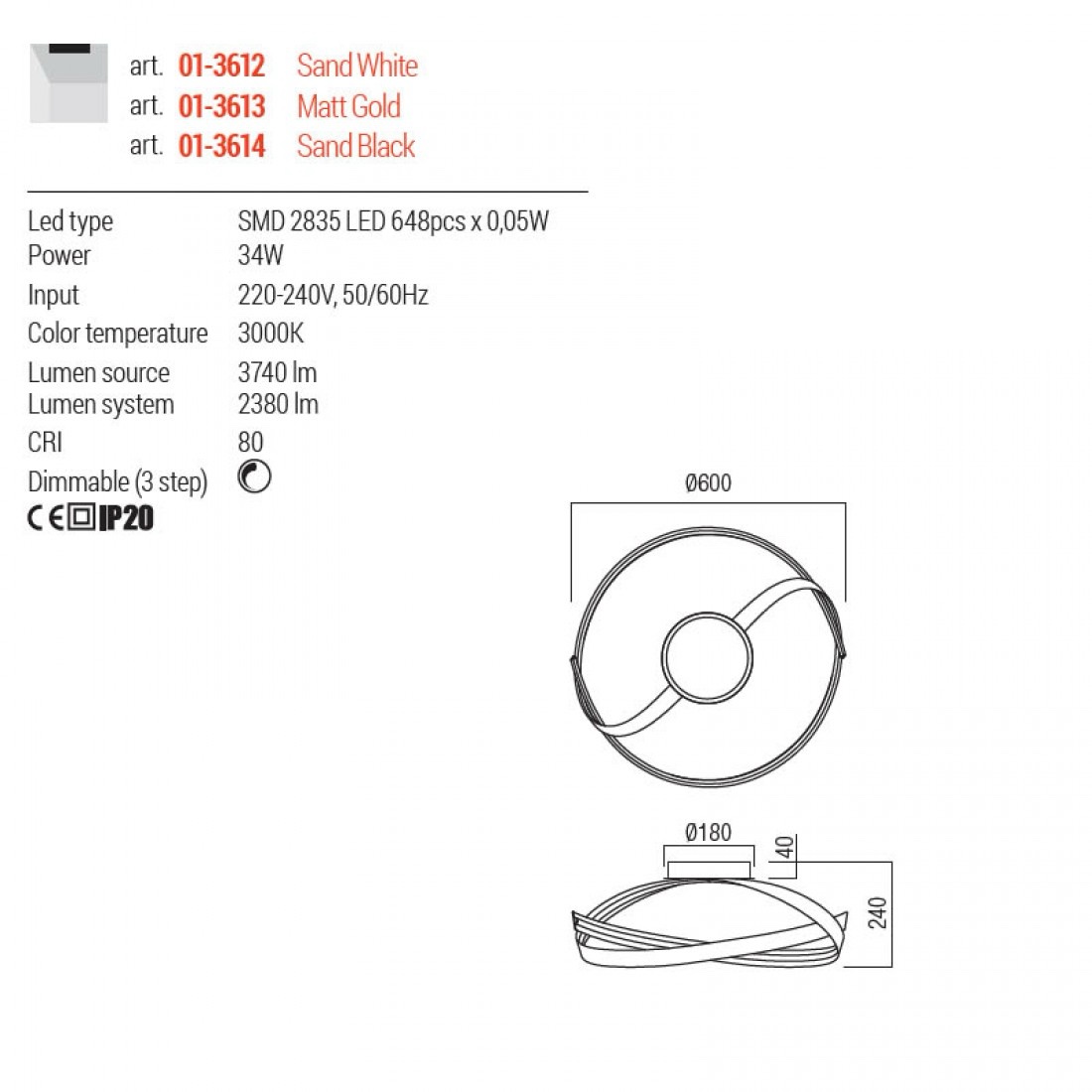Plafoniera Redo Impuls, auriu mat, LED, 34W, 2380 lumeni, alb cald 3000K, D.60 cm, 01-3613