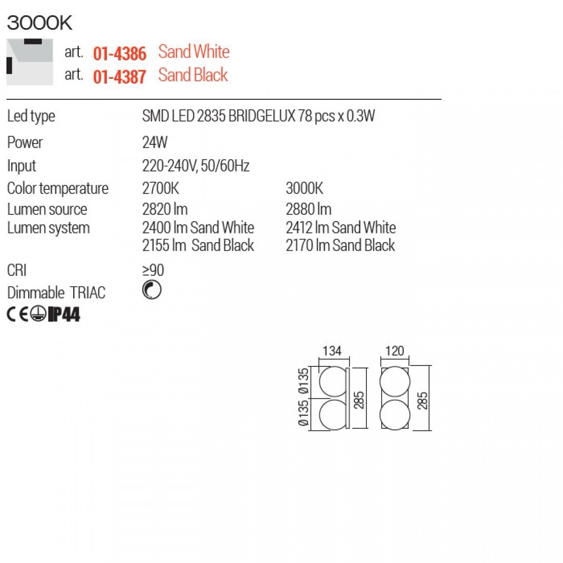 Echipata cu LED-uri SMD 24W cu temperatura de culoare alb cald 3000K.