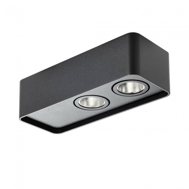 Plafonieră pentru interior cu spoturi orientabile,echipată cu LED-uri COB, structură din aluminiu extrudat, vopsită negru mat, dispersoare din policarbonat transparent.