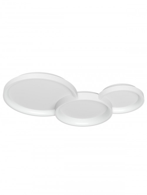 Plafoniera moderna pentru interior, cu posibilitate de selectare a temperaturii de culoare a luminii, cu structura din metal vopsita în camp electrostatic în culoare alb mat si dispersoare din acril alb opal.