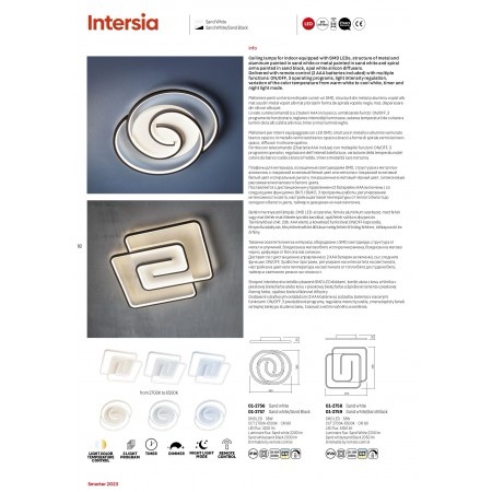 Plafoniera Smarter Intersia, alb, telecomanda, LED CCT, 38W, 2200 lumeni, 48×48 cm, 01-2757