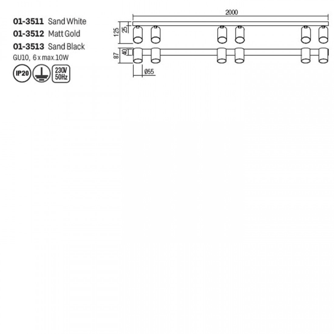Plafoniera Smarter Modi, negru/aur mat, 6XGU10, L.200 cm, 01-3512