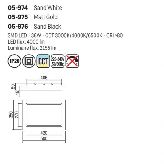 Plafoniera Smarter Perimetro, aur mat, LED CCT, 36W, 3000K-4000K-6500K, 2155 lumeni, L.50 cm, 05-975