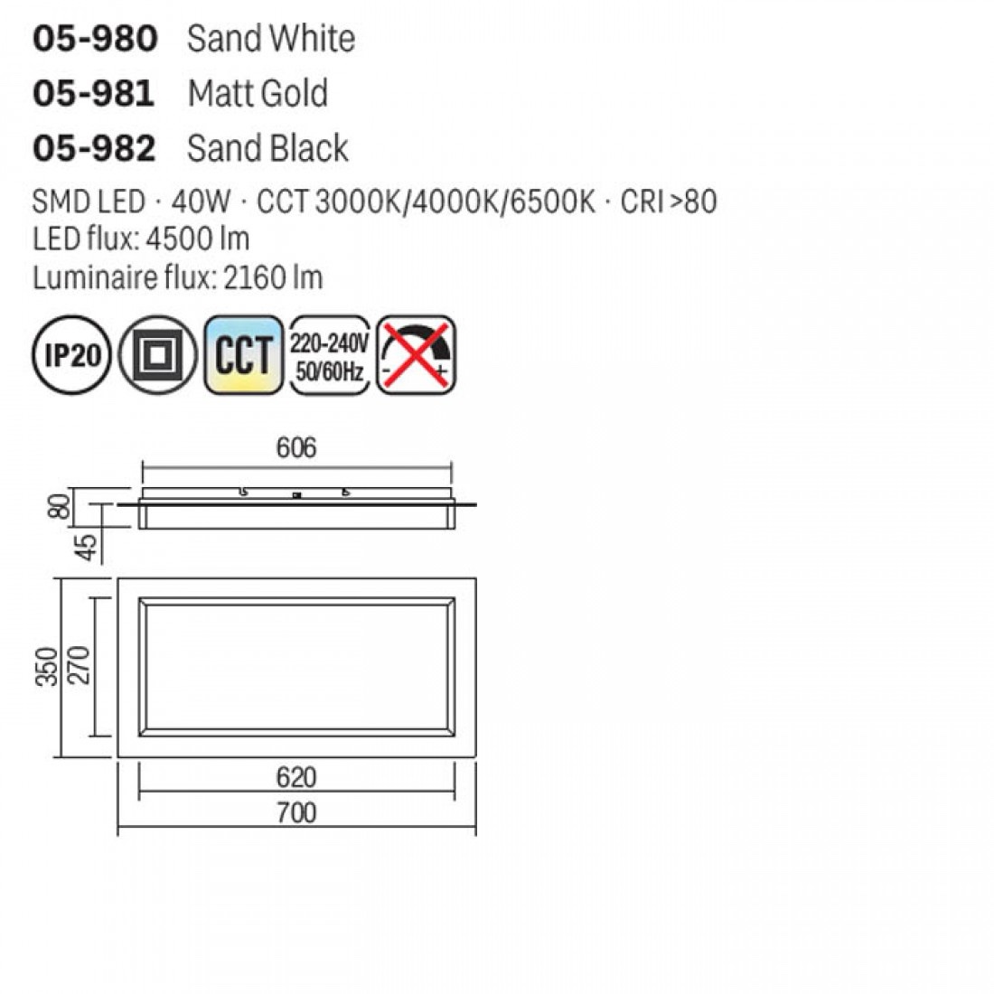 Plafoniera Smarter Perimetro, auriu mat, LED CCT, 40W, 3000K-4000K-6500K, 2160 lumeni, L.70 cm, 05-981