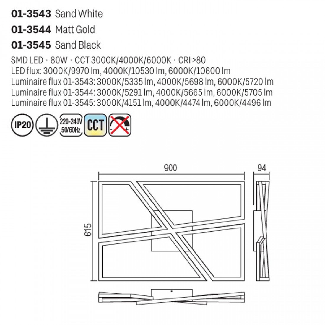 Plafoniera Smarter Slash, alb mat, LED CCT, 80W, 4496 lumeni, 3000K/4000K/6000K, L.90 cm, 01-3543