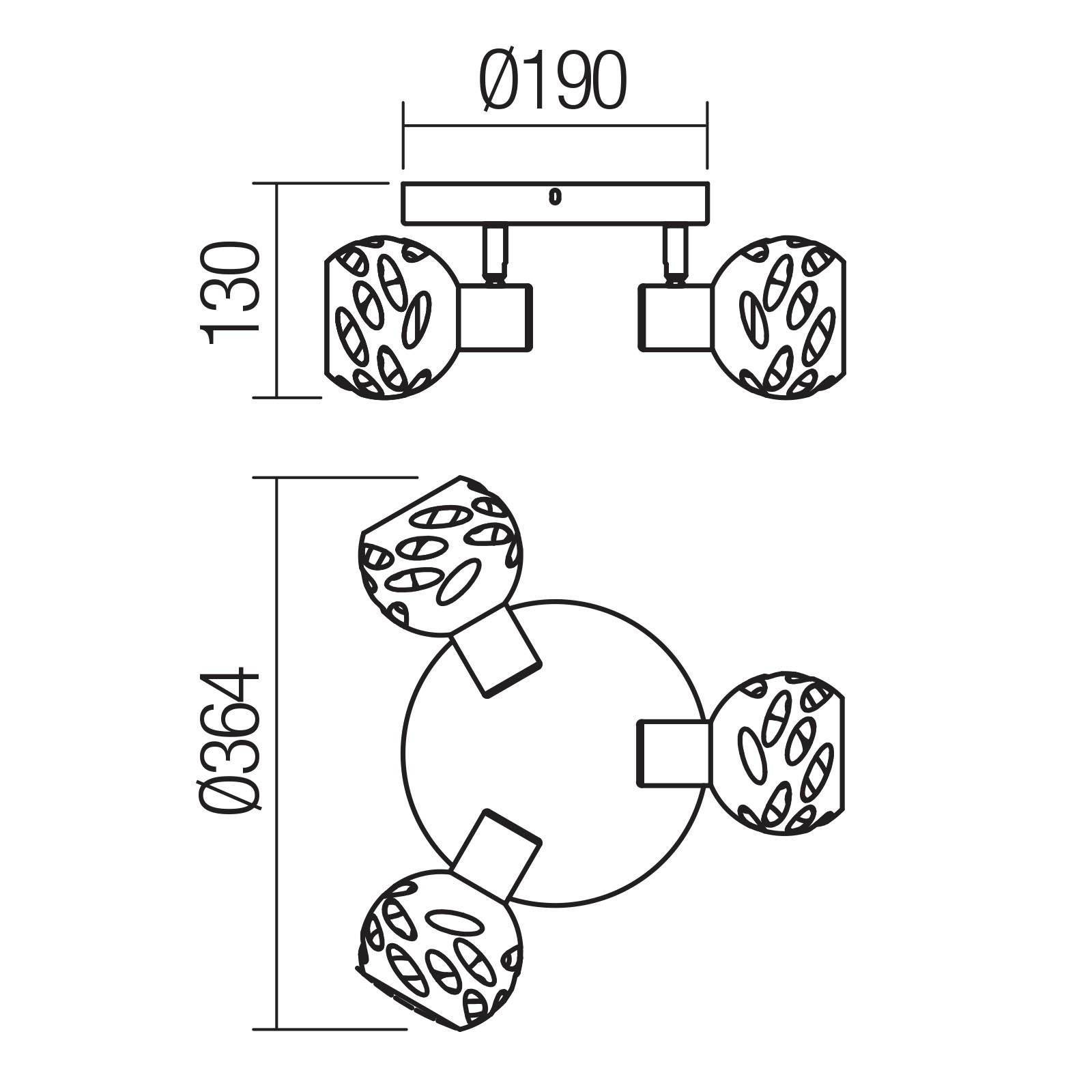 Corpul de iluminat poate fi dotat cu 3 surse cu dulie E14 pentru o putere maxima de 3 x 28W. Sursele trebuie achizitionate separat, plafoniera putand fi echipata cu becuri din categoriile A, B, C, D, E, F, G. Puteti astfel personaliza cu becul, intensitatea luminoasa si temperatura de culoare dorita.