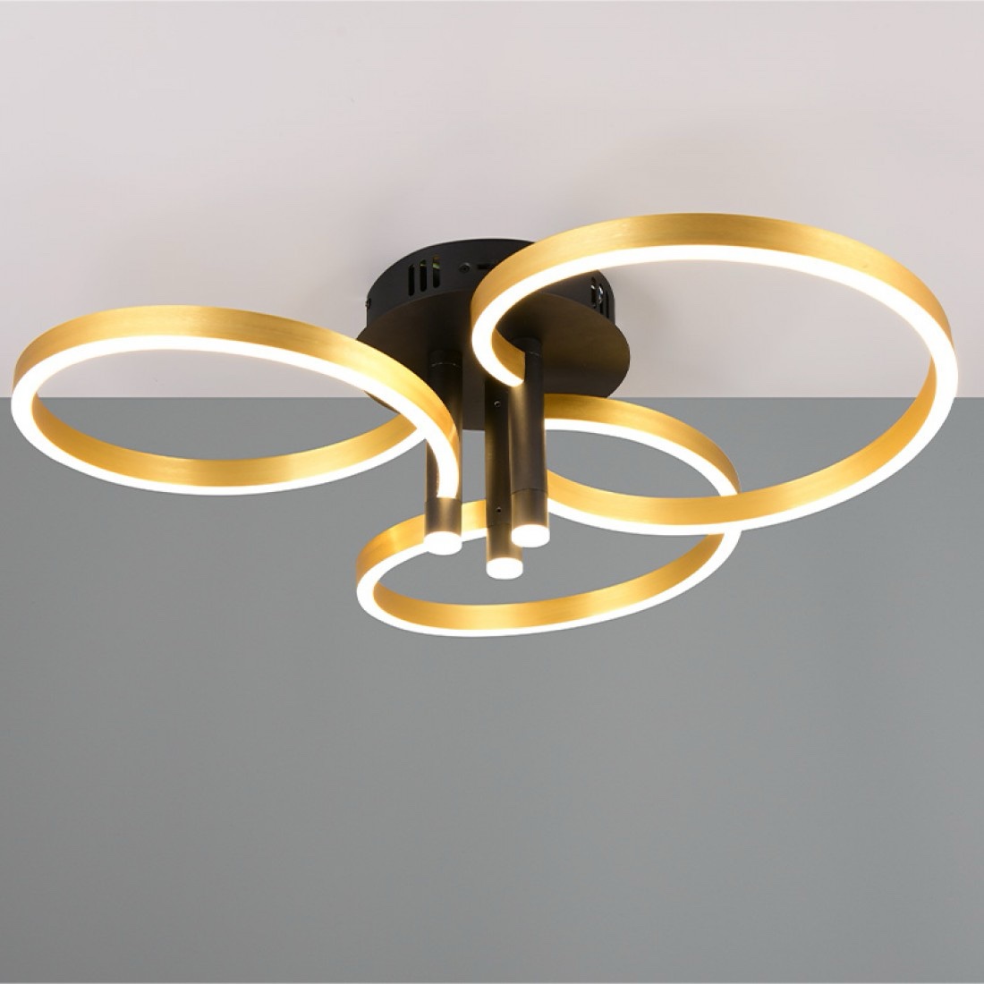 Plafoniera Trio Caruso, metal, negru/auriu, LED CCT, 43W, 4980 lumeni, 2300K/3000K/4000K, D. 65 cm, 648110680