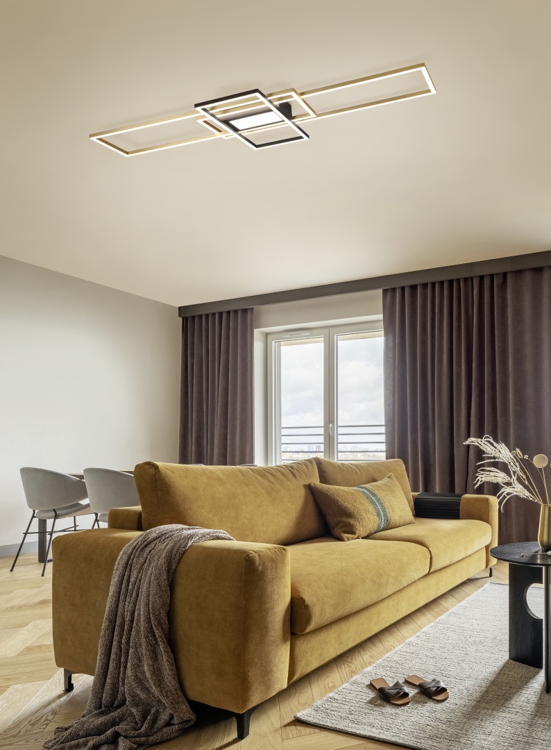 Plafoniera IRVINE oferă efecte de lumină atmosferică și moale și impresionează prin designul său deosebit de elegant, care completează perfect orice stil de interior modern. Corpul de iluminat impresionează și prin funcțiile suplimentare practice. Lampa are funcție de lumină de noapte, iar luminozitatea și culoarea luminii pot fi reglate continuu, astfel încât poate fi și reglată individual în funcție de condițiile de iluminare. Datorită funcției de memorie integrată, ultimul scenariu de iluminare setat cu telecomandă poate fi setat imediat ce corpul de iluminat este oprit și pornit din nou prin intermediul întrerupătorului de perete. Lampa, proiectată în alamă mată și negru mat, poate fi combinată cu multe stiluri de interior. În plus, corpul de iluminat dispune de tehnologie LED modernă, care se caracterizează prin calitate ridicată a luminii și eficiență energetică. În comparație cu lămpile cu halogen tradiționale, se pot economisi până la 80% din costurile energetice. În plus, lămpile cu LED beneficiază de durată lungă de viață, generare scăzută de căldură și protecție a mediul