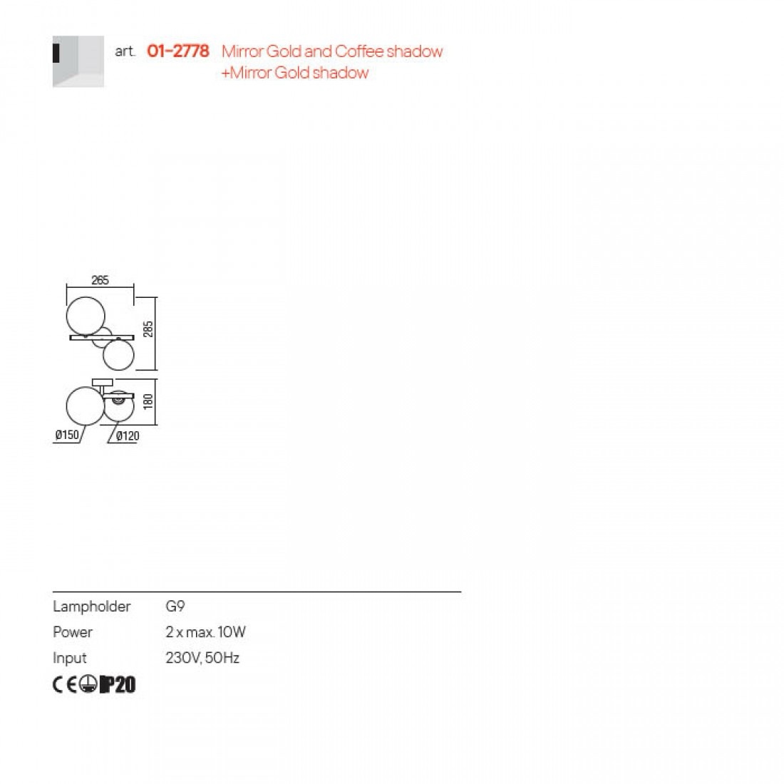 APLICA REDO ROY 2X10W G9 MATT BRASS/GOLD+COFFEE IP20, 01-2778