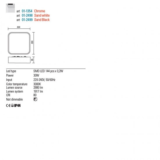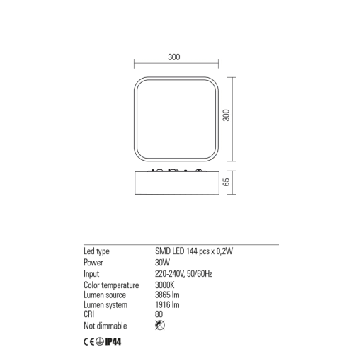 Plafoniera Redo SCREEN IP LED 30W 3000K IP44 WH/GLASS, 01-2498