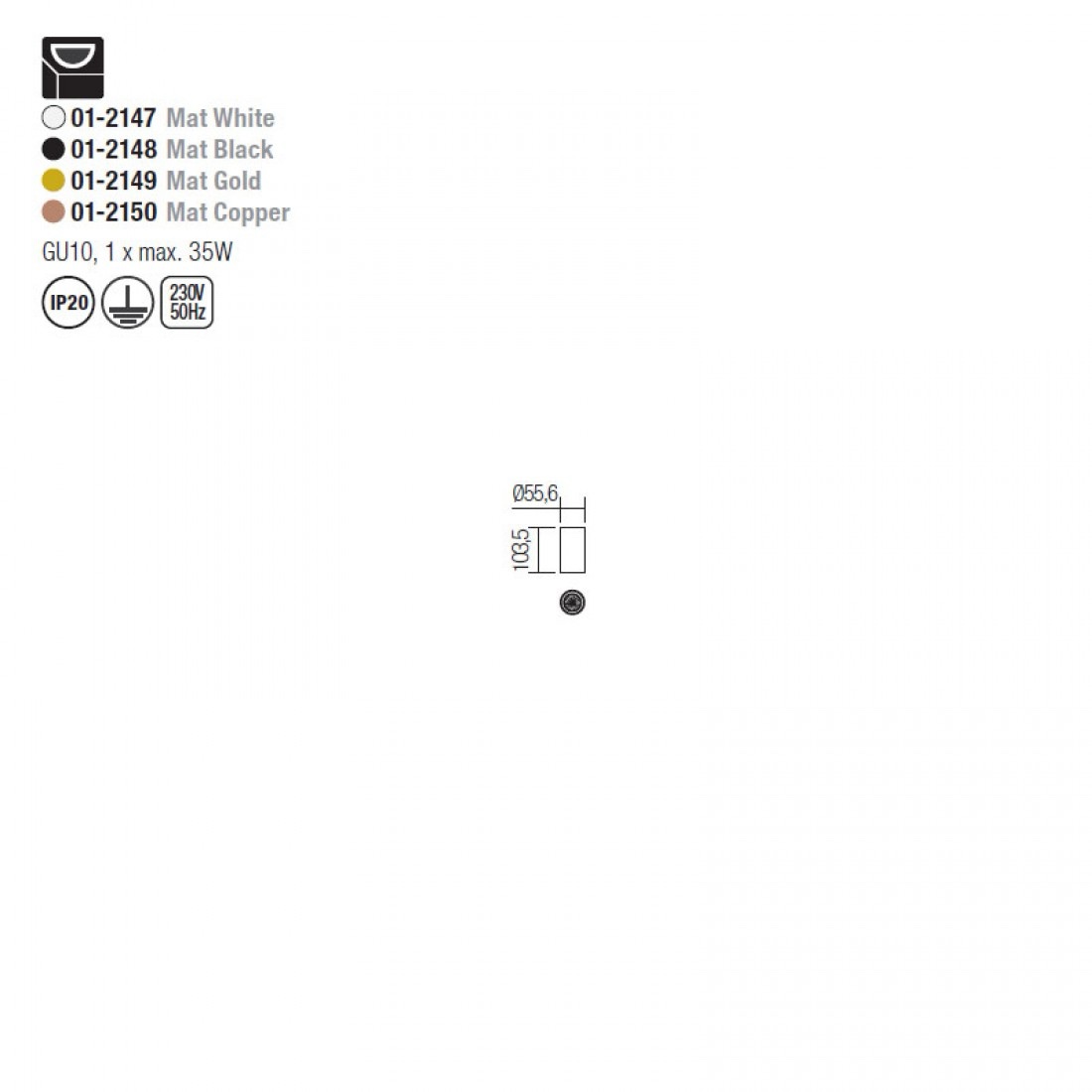 Acest corp de iluminat poate fi dotat cu o sursa cu dulie GU10 pentru o putere maxima de 35W. Sursa trebuie achizitionata separat, spotul putand fi echipat cu un bec din categoriile A, B, C, D, E, F, G. Puteti astfel personaliza cu intensitatea luminoasa si temperatura de culoare dorita.