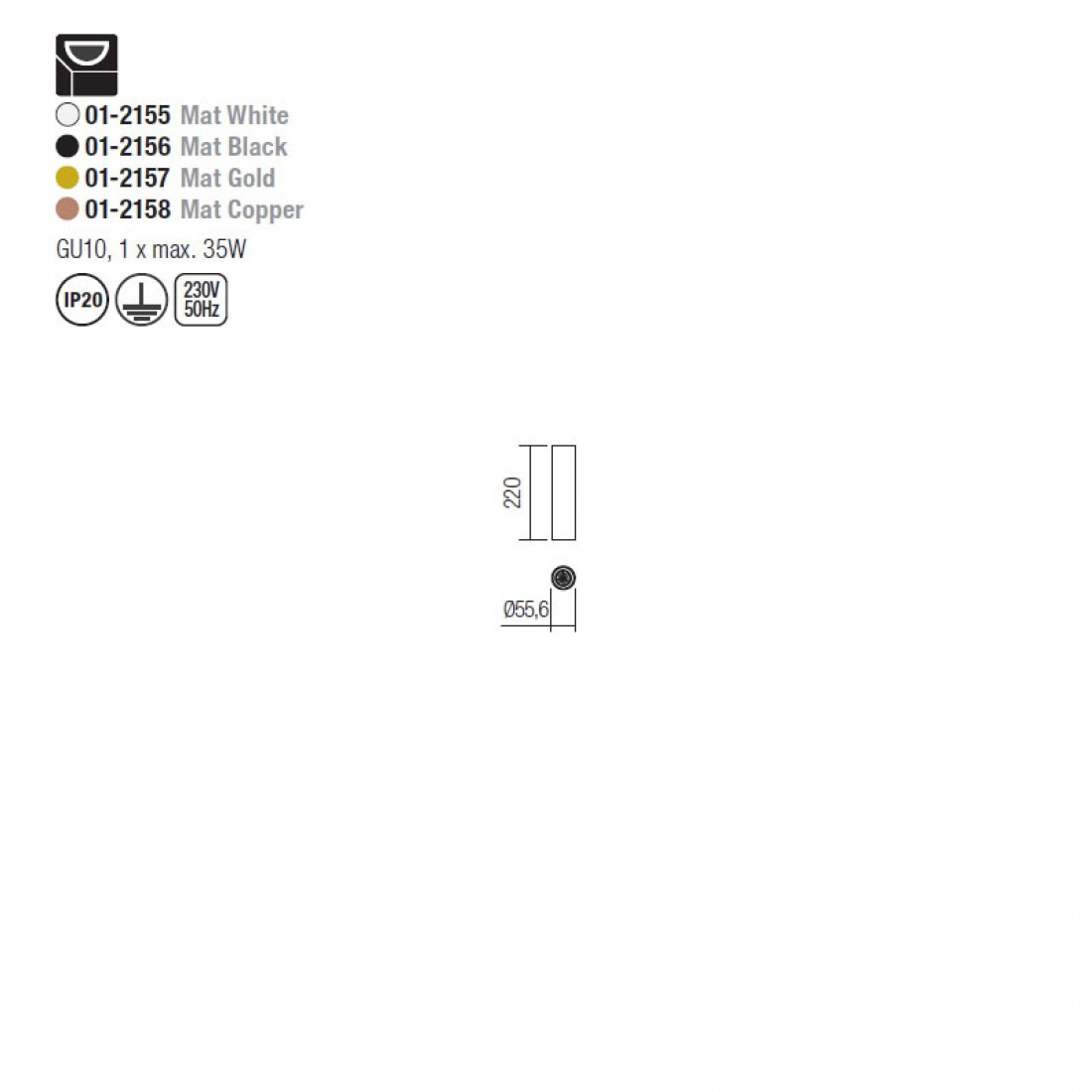 Acest corp de iluminat poate fi dotat cu o sursa cu dulie GU10 pentru o putere maxima de 35W. Sursa trebuie achizitionata separat, spotul putand fi echipat cu un bec din categoriile A, B, C, D, E, F, G. Puteti astfel personaliza cu intensitatea luminoasa si temperatura de culoare dorita.