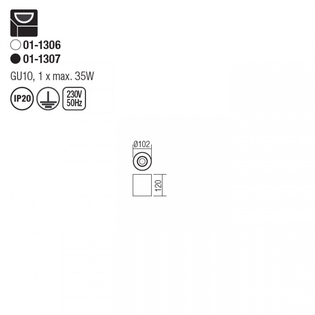 Acest corp de iluminat poate fi dotat cu o sursa cu dulie GU10 pentru o putere maxima de 35W. Sursa trebuie achizitionata separat, spotul putand fi echipat cu un bec din categoriile A, B, C, D, E, F, G. Puteti astfel personaliza cu intensitatea luminoasa si temperatura de culoare dorita.