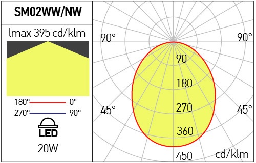 Plafonieră echipată cu LED-uri SMD cu temperatură de culoare alb cald. Carcasa din aluminiu turnat, vopsită în câmp electrostatic, culoare alb mat cu finisaj sablat. Bridă de fixare din oțel vopsită albă. Alimentator LED în curent constant inclus. Dispersor acrilic satinat.