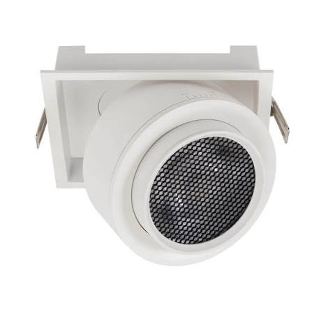 Plafonieră orientabilă de interior, cu ramă de încastrare pătrată, unghi de dispersie reglabil 15°-45°, pentru montaj semi încastrat, echipată cu LED COB, temperatură de culoare alb neutru.