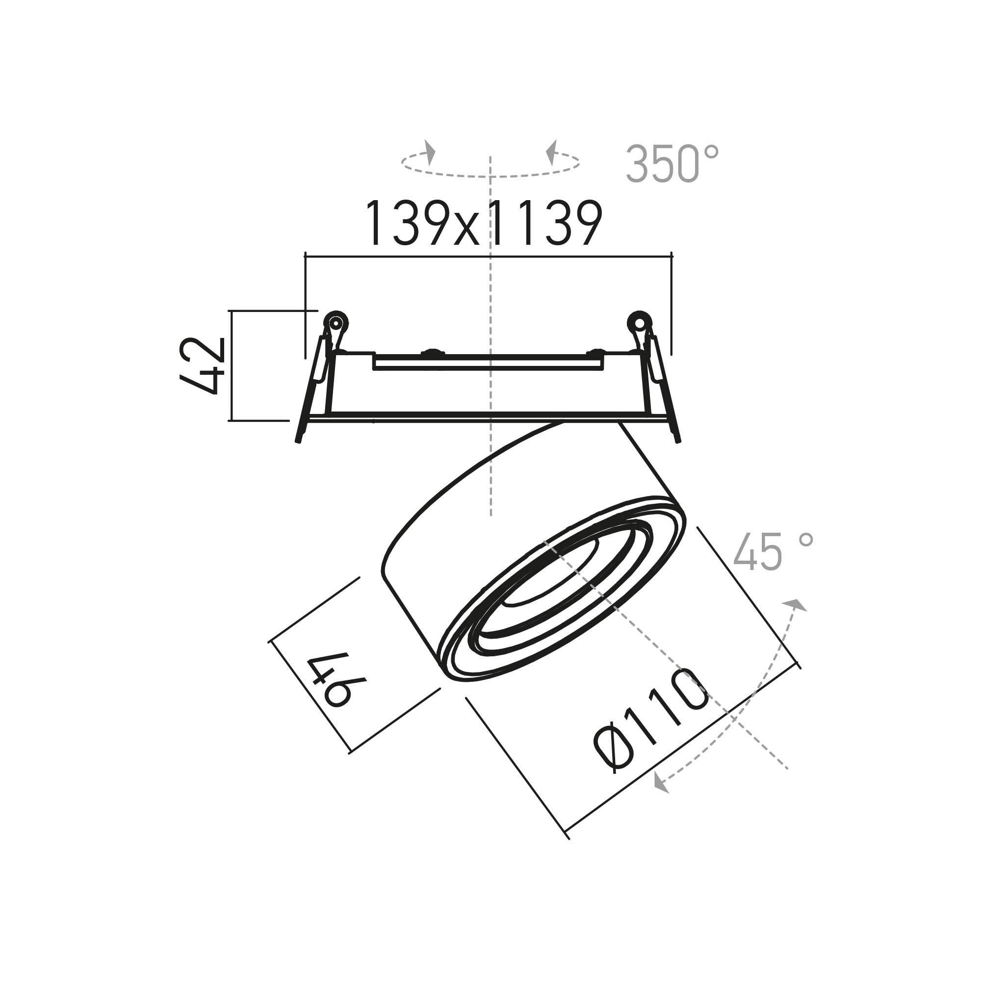 Corpul și rama de încastrare din aluminiu extrudat, vopsite în câmp electrostatic, culoare alb sablat.